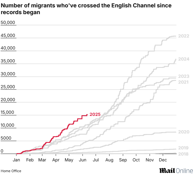 More than 14,800 people have arrived in Britain after making the crossing so far in 2025 – making it the worst start to the year on record.