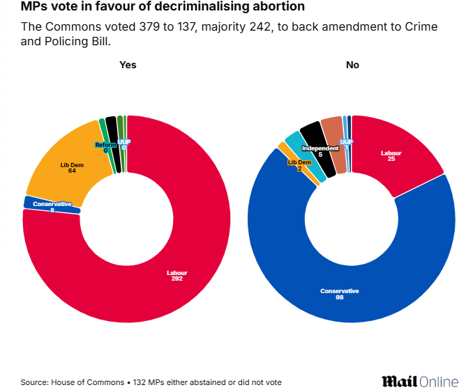 Almost 300 Labour MPs helped push through an amendment to the Crime and Policing Bill that means women will will no longer face prosecution for aborting their own baby for any reason and at any stage up to birth.
