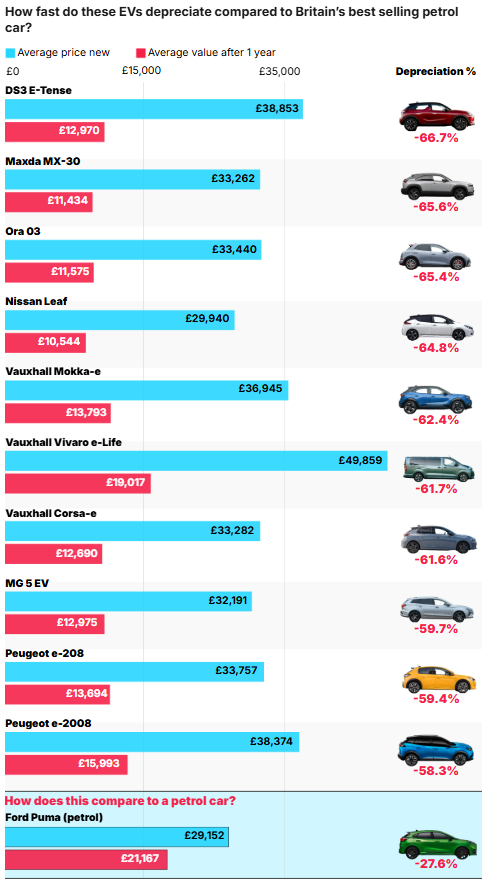 Worth reading in full – the article includes a countdown of the 20 electric cars that lose the most value in the first year.
