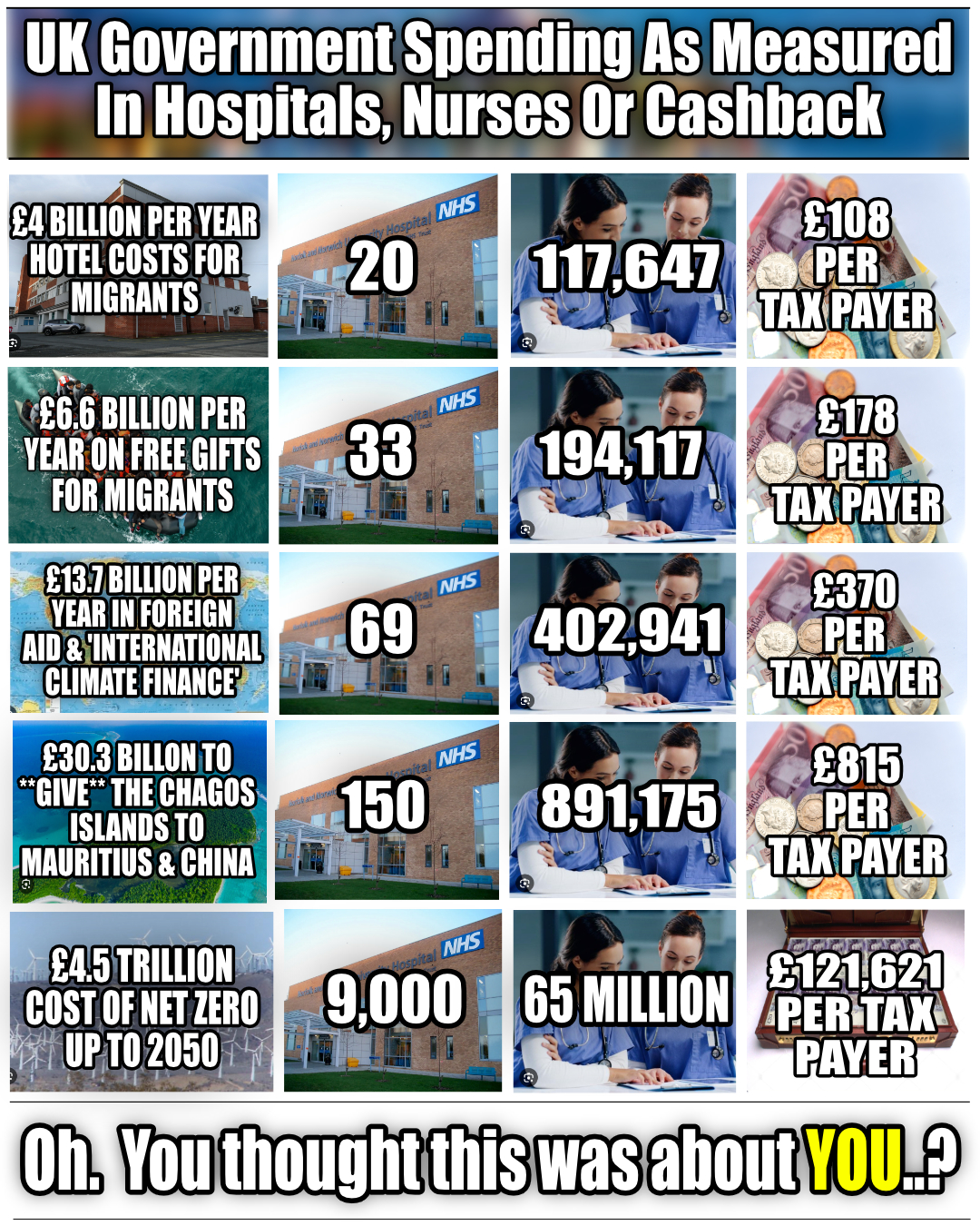 I don’t doubt these figures but it does confirm what I have been posting these last five years – the aim, the intention is to bankrupt the country. Anybody with any degree of fiscal competence could see that all of the above expenditure should be cancelled, it is neither necessary nor affordable. So why isn’t it stopped?