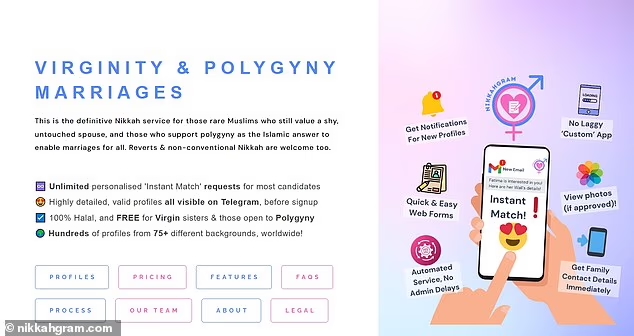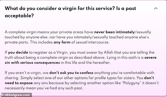 NikkahGram describes itself as a service for Muslim men who want a “shy, untouched spouse” and those who are looking for more than one wife.