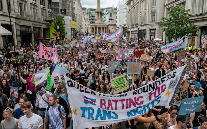 Saturday’s march to Parliament Square Gardens was the biggest annual trans protest in the UK, with about 100,000 people in attendance, according to organisers. …