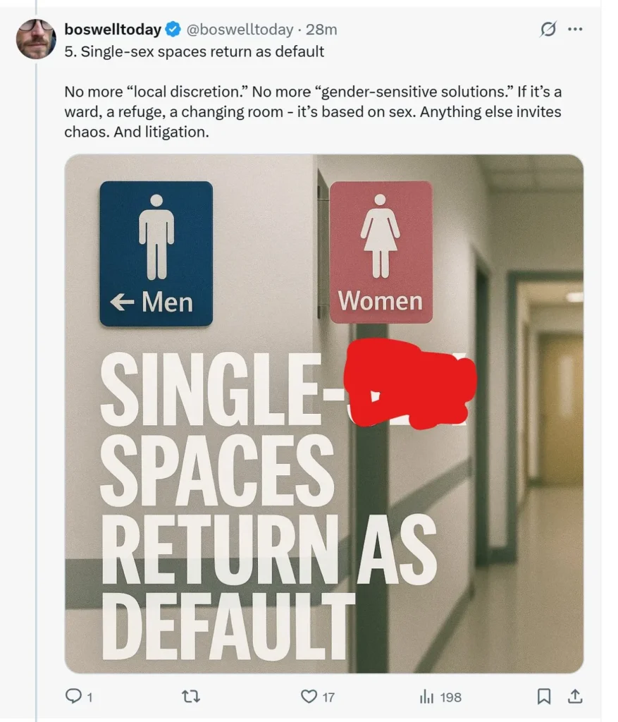 This post calling for single-sex spaces has been censored: