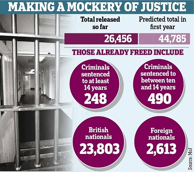 Astonishing figures for the soft-justice programme suggest 45,000 could have their sentences cut in its first year.