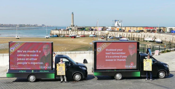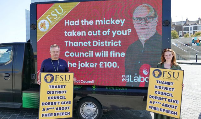 Lord Young of Acton added: βThanet District Council seems to be in the habit of announcing these authoritarian restrictions on free speech, only to back down when the Free Speech Union threatens legal action.