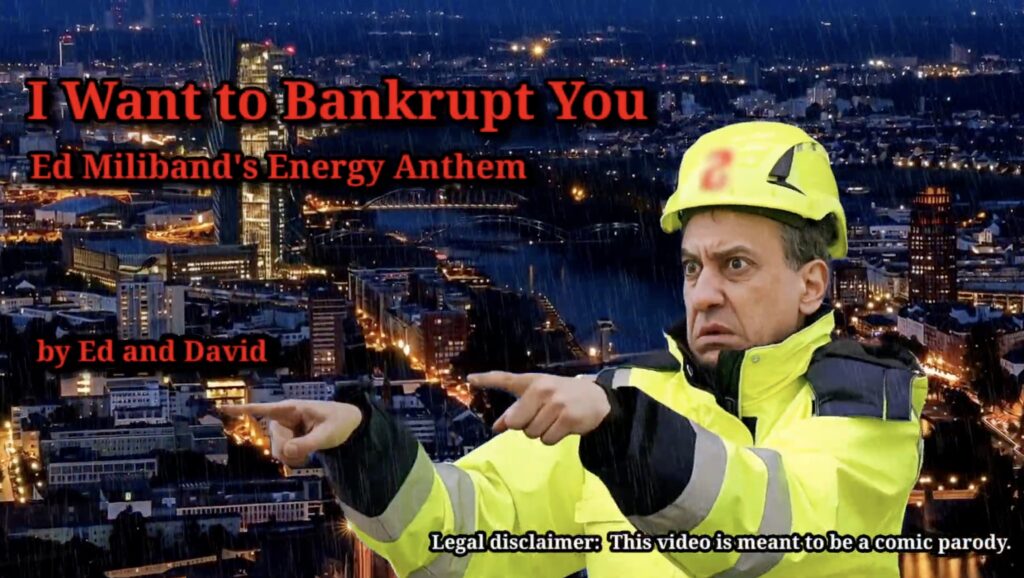 And here’s a link to a fourth video I tried to upload this week to YouTube – eco-zealot Ed Miliband singing about how he is going to bankrupt Britain. But I was prevented by the YouTube ban: