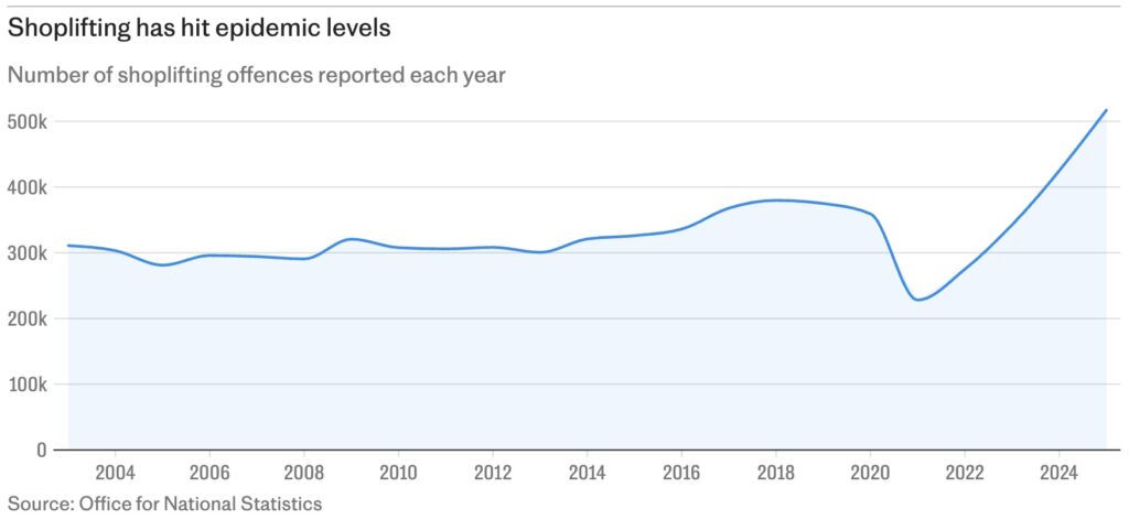 Sir Keir Starmer’s Government has made tackling the shoplifting epidemic one of its key priorities, but a record high of nearly three thefts were carried out every minute in the year to this March.