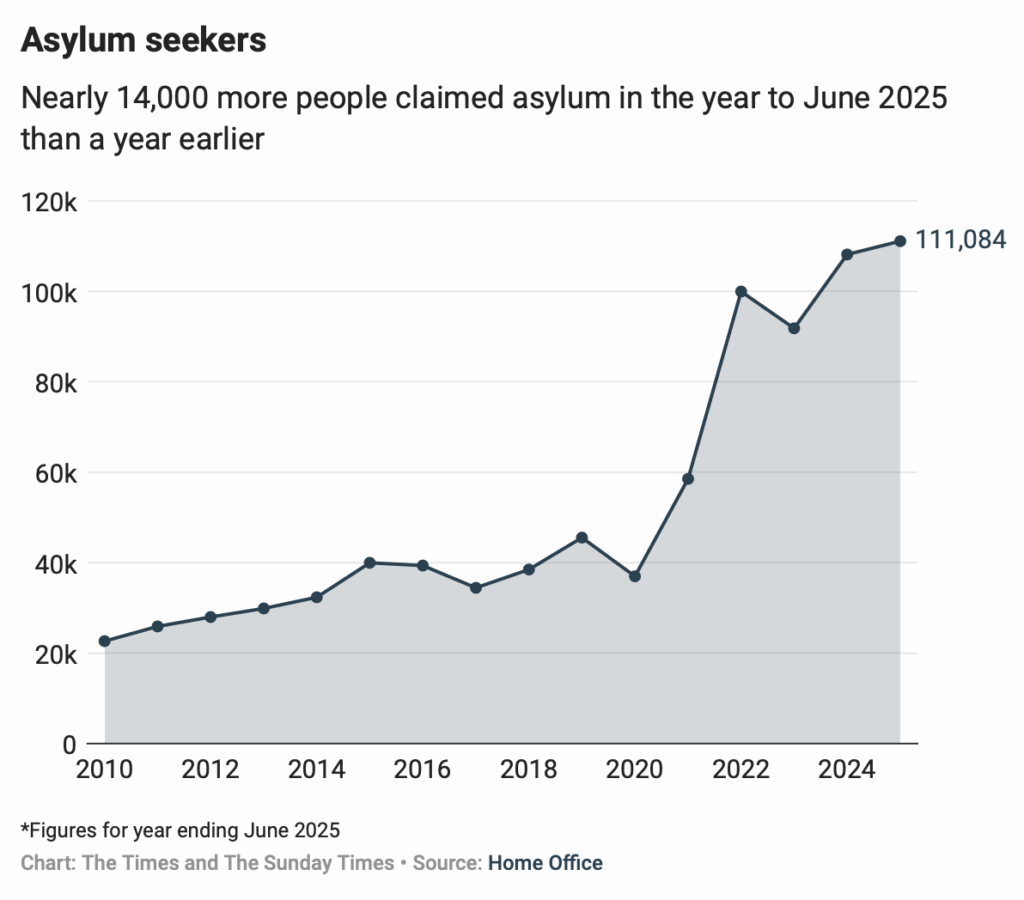 Record 111,000 Claims From Asylum Seekers in Labour’s First Year