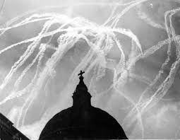 And if this is a relatively new scam, may I direct you to this – rather famous – picture of St Paul’s during the Battle of Britain. Contrails. 1941. Don’t think the Spitfires and Messerschmitts were bothering to lay chem-trails, do you? And if they were – why no significant weather change in 80 years? If it was that successful (not) I think they might have packed up by now, don’t you?