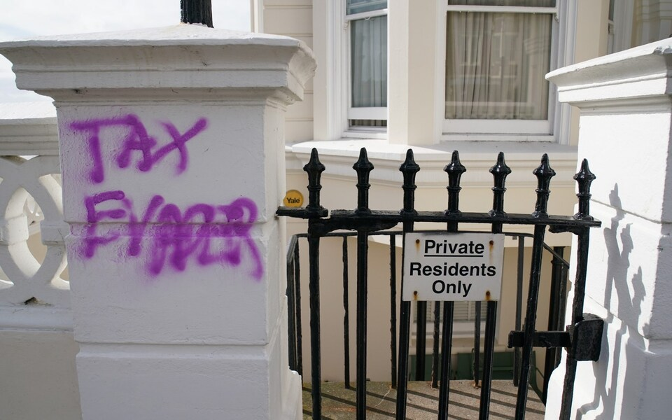 One message reads: “Tax Evader Rayner!” while another says: “Tax Evasion” on the wall outside her apartment. There is no suggestion that Rayner has evaded paying tax.