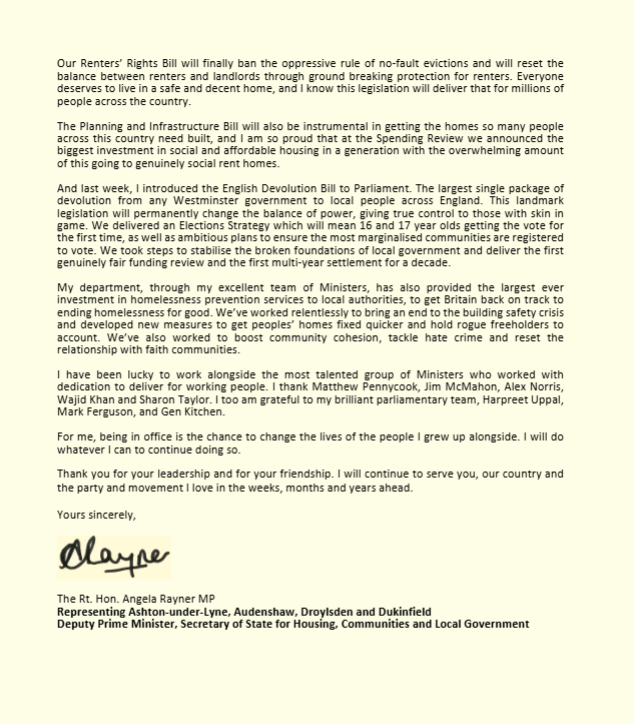 Update: Rayner was found to have broken the ministerial code. From the Telegraph.