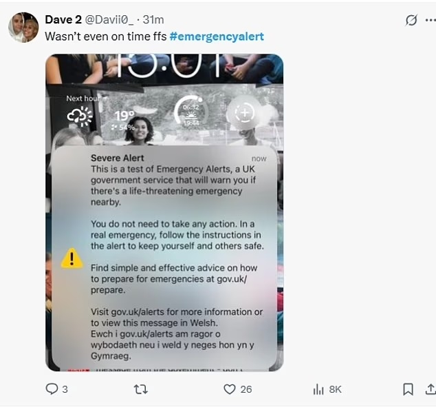 However, scores of unimpressed Britons rushed to social media to mock the system after receiving the alert late – calling into question what would happen in a real emergency.