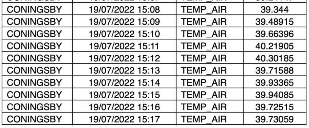 Minute records are not freely available on Met Office sites, but the Daily Sceptic can reveal the 60-second measurements either side of the 40.3°C national ‘record’ declared on July 19th, 2022 at RAF Coningsby. Over just three minutes, the temperature both rose and fell by 0.6°C and a subsequent FOI request indicated the presence of landing Typhoon jets.