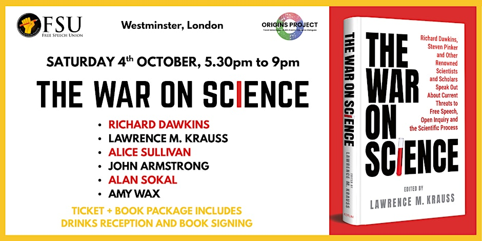 Book your tickets for the October 4th book launch of The War on Science, hosted by the Free Speech Union in Westminster.