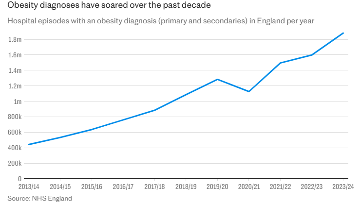 And have sugar taxes worked in cutting obesity? No – since introducing them in 2018 obesity has accelerated.