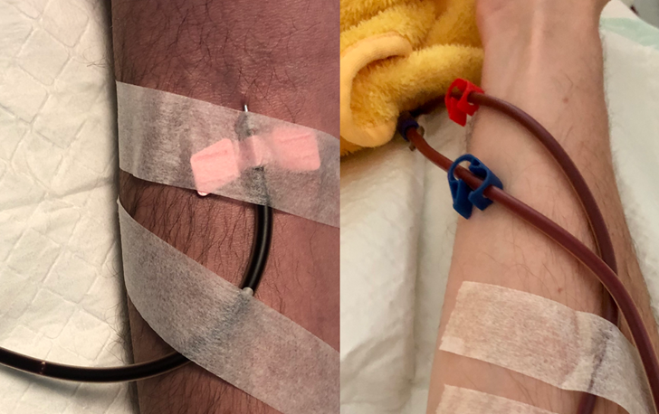 Microclots, meanwhile, represent another key problem. Stemming from the pioneering work of Professor Resia Pretorius, these microscopic clots are too small to cause a stroke but so numerous that they can condense the blood, render it sluggish and provide a further reason for reduced tissue perfusion. Anecdotally, many patients report that their blood looks darker, a likely consequence of its increased viscosity. This was noted in my case too when I travelled to an excellent dialysis centre in Germany for HELP apheresis treatment, a blood-washing procedure that thins the blood using heparin. The change in the colour of my blood after my treatments was striking: