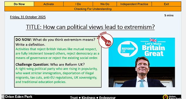 Richard Tice, Reform’s deputy leader, complained after discovering that staff at the Orion group, which runs eight academy schools in South London, used a picture of him in teaching materials to illustrate “extremism” – defined as activities which “reject British Values”.