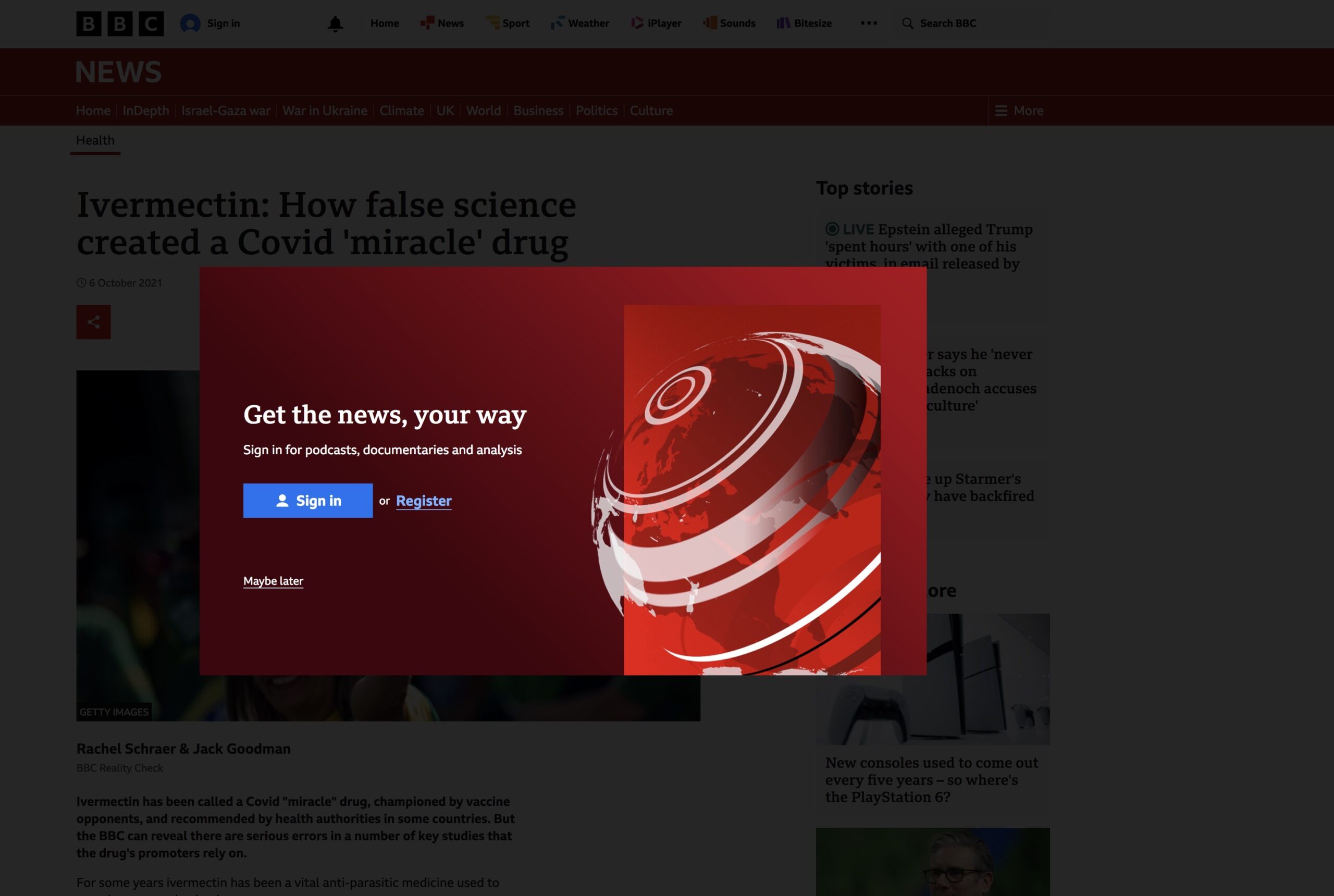 It doesn’t do that for me, and I don’t even have a BBC profile to sign in with. The thought of just having one makes me feel sick, and the effects of the thought of using it to identify myself with the BBC don’t even bear mentioning. Maybe it’s because it’s a .com URL and because I am viewing from France.