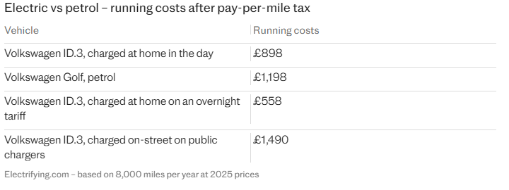 Plug-in hybrids, meanwhile, which will be subject to a 1.5p per mile charge from 2028, would become more expensive to run than a petrol vehicle if they are not regularly charged at home.