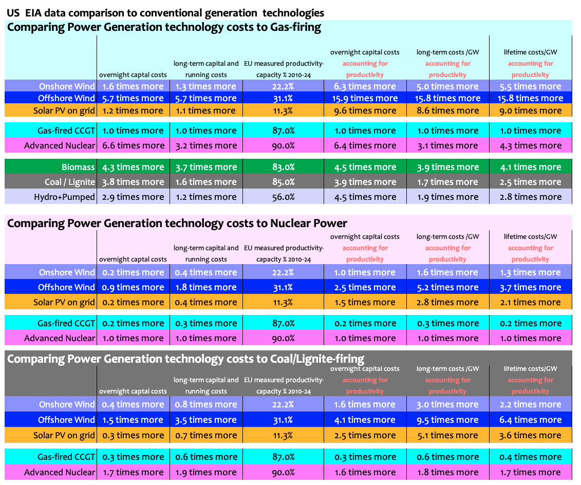 Over the last 2 decades, the Climate alarmism rife in Western Nations has led Governments to mandate Weather-Dependent “Renewables”, (Wind and Solar), for power generation. This is an attempt to replace reliable, high productivity, energy dense power generators, Coal, Gas and Nuclear, that provide firm power for large scale National power production with dilute, low productivity, intermittent but nominally “Renewable” generation from Wind and Solar technologies. The government mandates have been continuously supported by strident assertions that “Renewable” technologies are vastly cheaper than the cost of using fossil fuels, asserting that “Renewable” technologies are “nine times cheaper”. That statement is a gross self-deception inside Government and a massive Fraud on the public. The supposed benefit of “Renewables” is that they do not directly release any CO2 emissions for the power they produce. But the only rationale for this exaggerated assertion is that as the fuel is the Weather and the Weather is cost free, so, Weather-Dependent “Renewables” must be “Cheaper”. It is not quite that simple. It is nothing but a naive fallacy. For power generation at a scale sufficient to support developed civilisations that assumption is a fallacy: it flies in the face of the Laws of Physics it ignores the scale and costs of the engineering… Read more »