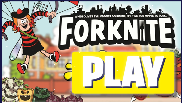 But the comic also repurposed its most popular characters, like Minnie the Minx and Dennis’s dog Gnasher, by wedging them into various online games, like ‘Eat Them to Defeat Them!’ and ‘Forknite’, a parody of popular online shooter Fortnite: