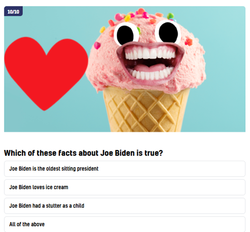 Admittedly, Trump is President of the USA, and thus Main Character of the World right now, and famous even to schoolboys – but so was Joe Biden, once. Was the Beano website equally full of jokes about him? The only mention of Zombie Joe I could find was the following deeply anodyne quiz: