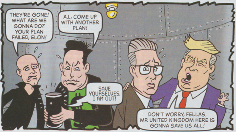 More expectedly, in one recent issue, Sir Keir actually saves the day by rescuing Donald Trump, Elon Musk and Jeff Bezos from the fate of dying on a rocket in outer-space by (admittedly rather haplessly) pressing an escape-hatch button.