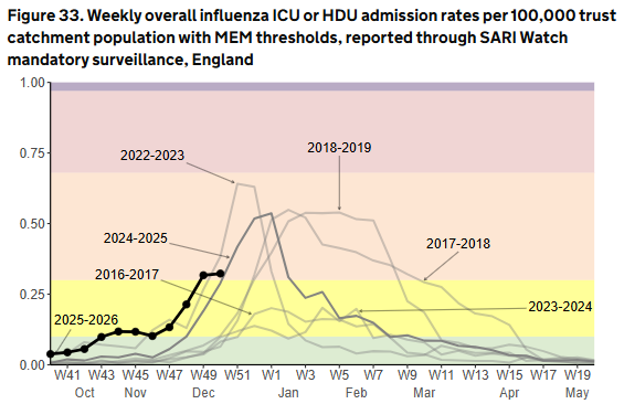And on the BBC SW news this evening, “Superflu cases continue to rise” and doctors advise everyone to get vaccinated |(even though vaccination during an epidemic is contraindicated).