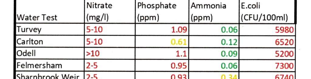 Environmental volunteers from BedsGOVET test its water quality each month at 17 places both upstream of Bedford and down, and November’s figures were astonishing. Ofwat says E.coli bacteria at anything over 900 CFU per 100ml is too risky for bathing, but only one site recorded as little as twice that. Readings at 14 others ranged from 5,030 to 7,700 CFU – more than five times the limit.