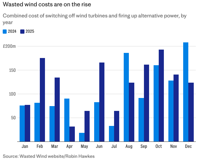 With only days to go before the end of December, the combined total of this spending now stands at £1.46 billion this year – up from £1.23 billion in 2024, data from the Wasted Wind tracker website show. …