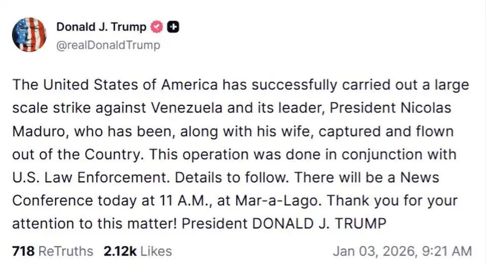 Stop Press: Trump has said the US will run Venezuela “until such time as we can do a safe, proper and judicious transition”. From the Telegraph: