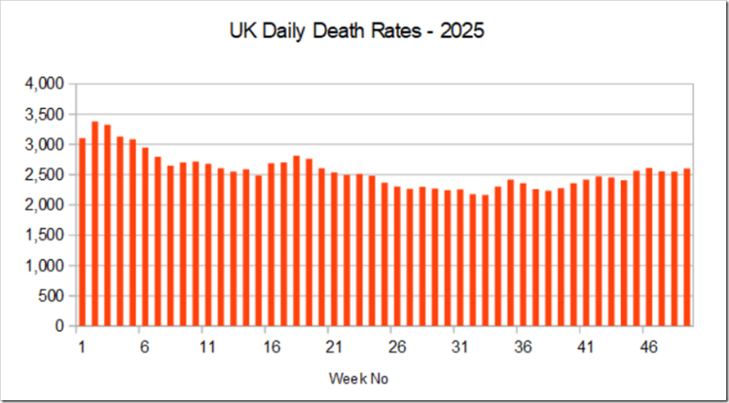 There is a little blip upwards in Week 18 (week ending May 2nd), which almost certainly is a catching up of the backlog that built up over Easter, and also another blip up in Week 35, which included the August bank holiday – probably extra registrations crammed into the four-day week.