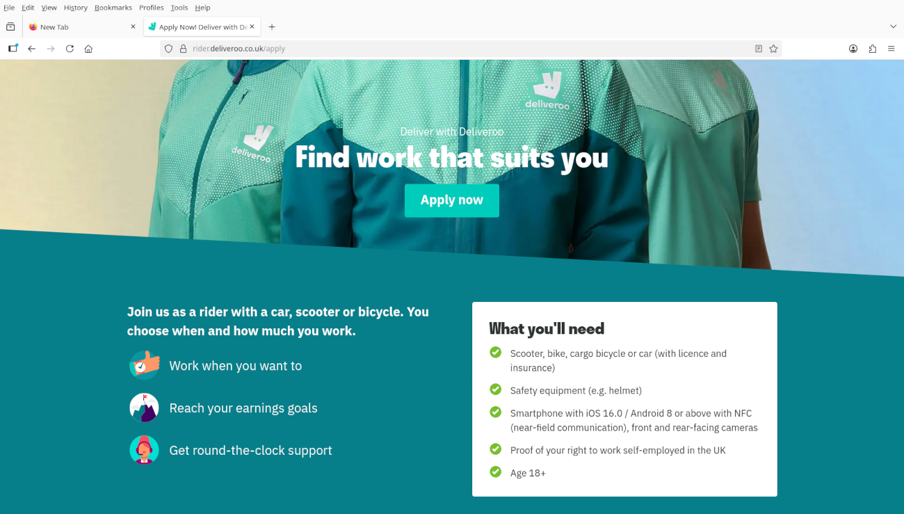 One of our sons worked for Deliveroo. He did the deliveries on a bike. He knew all the Deliveroo kids, they were all in the same 6th form as him.