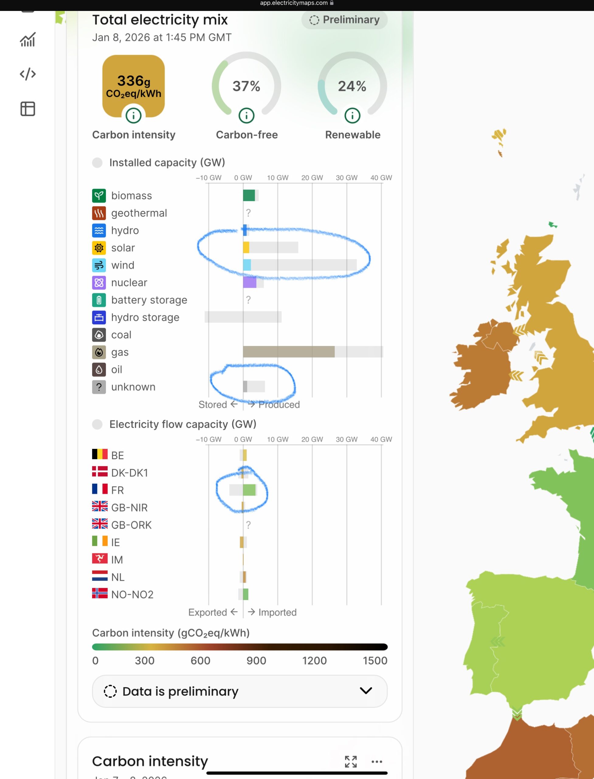 I have just blown my mind, following my comment about Germany and have found the electricitymaps app, which shows the whole world method of production and who is trading with who. Awesome.