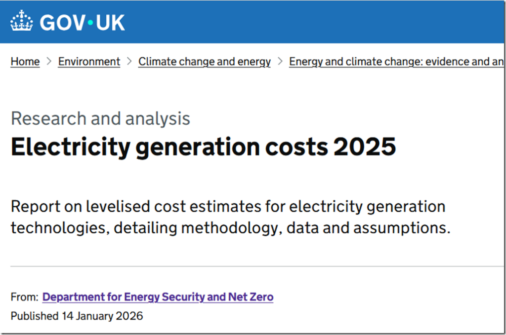 The data annexes confirm that the cost of new CCGT is estimate as £109 per MWh at 2024 prices – but this includes £41 per MWh for carbon tax, which is not a “cost” at all but a Government imposition. (It relates to the Emissions Trading Scheme, which could be torn up tomorrow, if the political will was there.)