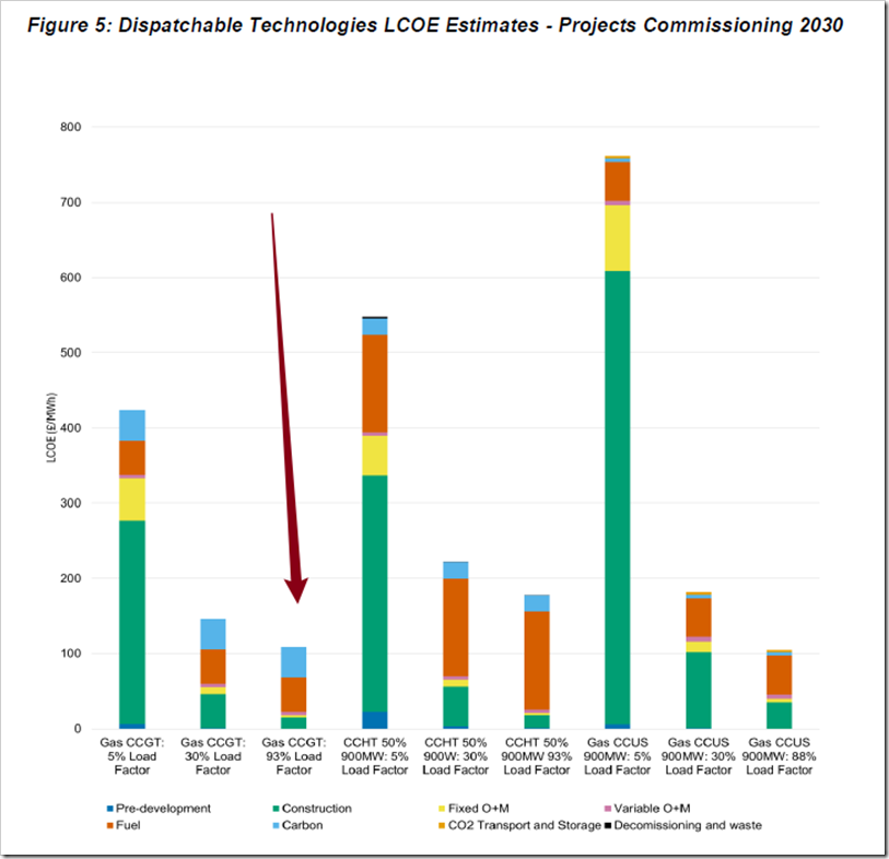 The PDF analysis contains this table – I have highlighted the relevant column for Combined Cycle Gas Turbine (CCGT) technology: