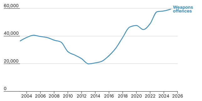 The homicide rate, on the other hand, has fallen to 499 – the lowest figure since 1983 – down from 535, driven by a drop in fatal stabbings to 174, down from 227. Remarkably, while in 2017 there were 2.51 killings for every 100,000 people aged under 25 in London, that figure was down 74% to 0.65 in 2025. Professor David Wilson, Emeritus Professor of Criminology at Birmingham University, attributed the drop to men “expressing masculinity in a way that they didn’t previously”: