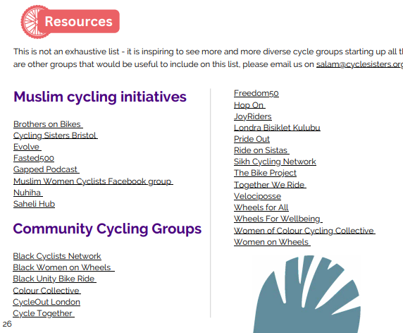 Unfortunately, this is just the beginning of identity-based cycling groups, as you can see in this section of Cycle Sisters’ report, which lists more Muslim and “Community Cycling” groups: