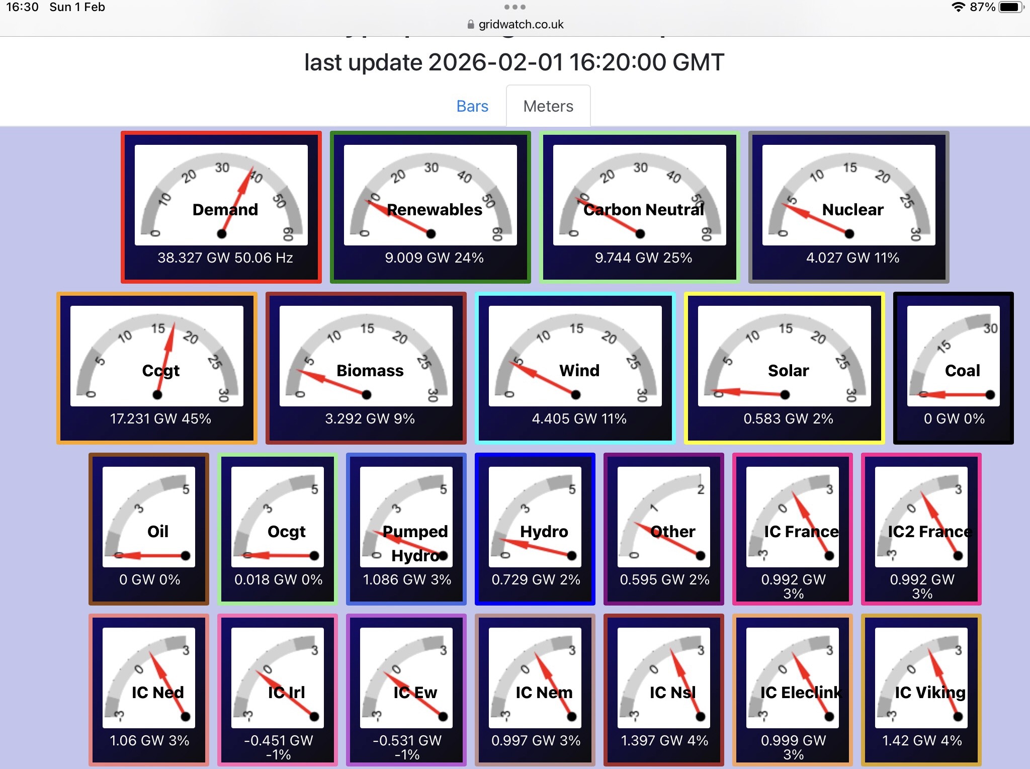 Has anyone else noticed in recent times how we are buying much larger amounts of electricity from continental Europe, presumably to make our over reliance on hydrocarbon energy look better. It used to be 2-3 Gw, but is now frequently 7 or even 8 Gw. One wonders how much more we are paying for imported electricity than for domestic or imported gas, just to make the carbon footprint look better.
