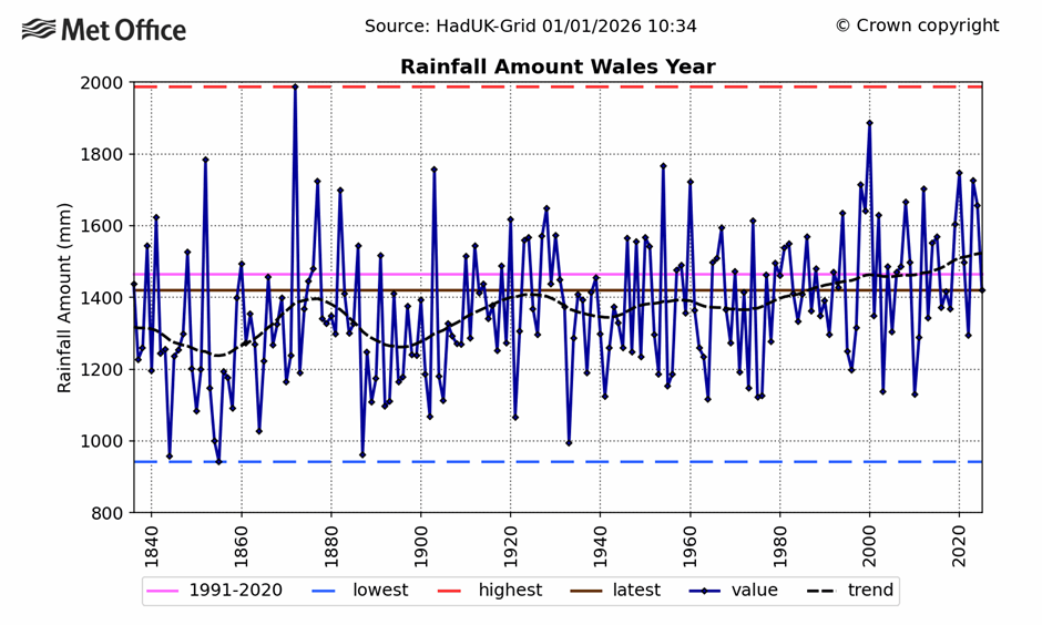 Rainfall appears to have increased across Wales in recent years, but the amounts involved are unlikely to be noticed by the already sodden Welsh.
