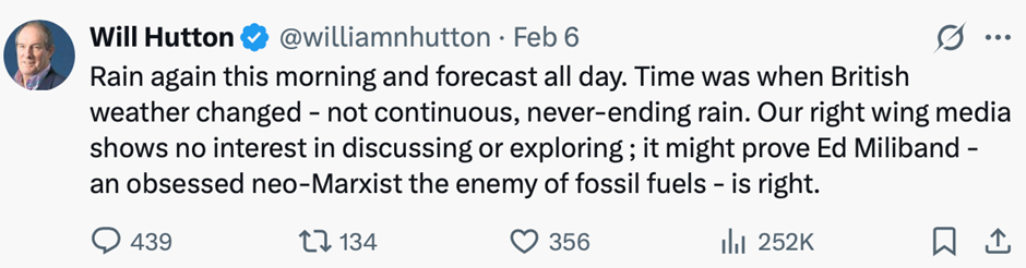 Left-wing author and former editor of the Observer Will Hutton had this take on a rainy start to 2026.