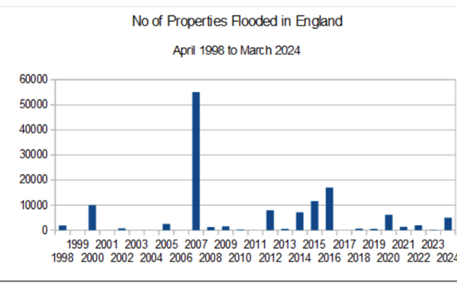 There are over 26 million dwellings in the country, but according to the Environment Agency, only 5,000 properties have been flooded on average every year since the turn of the century. Over this period, no trend out of the ordinary can be discerned.