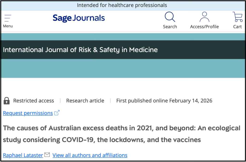 An article published by Sage, one of the top five academic publishers, has just been released, not just noting the curious phenomenon of excess mortality and how it happens to correlate with the COVID-19 vaccination programme, but pretty much proving that the jab is involved, by explaining that governments already admit to COVID-19 vaccine deaths, but also – and more satisfyingly – ruling out the typical alternative explanations of COVID-19 itself and the lockdowns via an ecological study focused on four Australian regions.