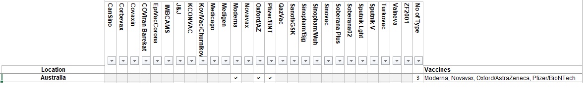 This graphic shows Australia had 3 of the 28 vaccines that were developed. All 3 were/are mRNA ‘vaccines’.