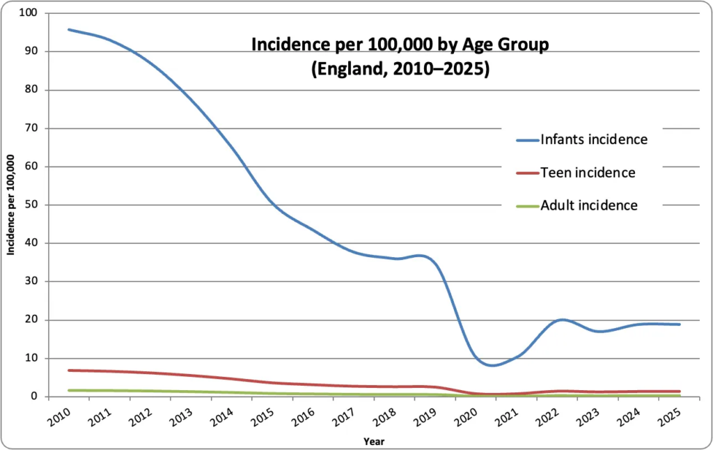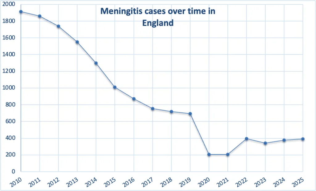 Since COVID-19, the UK has not experienced large-scale meningitis outbreaks but has seen recurrent localised clusters, particularly among young people.