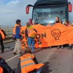 A Just Stop Oil mob today tried to stop the first asylum seekers returning to the Bibby Stockholm barge, claiming the migrants are victims of climate change and blaming the Government.
