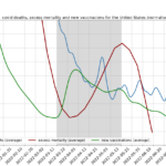A graph shows a close correlation between when vaccine boosters were rolled out in the U.S. in the spring and a wave of excess deaths at a time of falling Covid deaths.