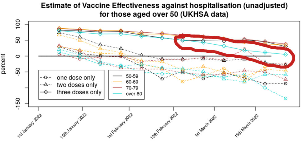 The UKHSA's final vaccine report with data by vaccine status is out, and it shows vaccine effectiveness against hospitalisation in the over-80s headed to zero. Is the dire data the real reason it's been pulled?