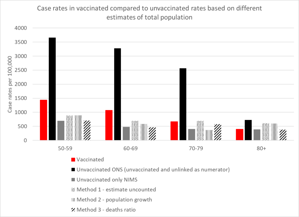 New analysis shows that the UKHSA data showing higher infection rates in the vaccinated is not a result of using wrong population estimates, as critics had claimed.