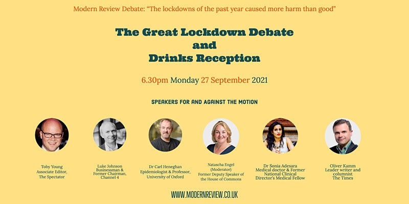 On September 27th please come along to the Great Lockdown Debate and Drinks Reception being organised by Modern Review, a new international magazine being launched early next year.